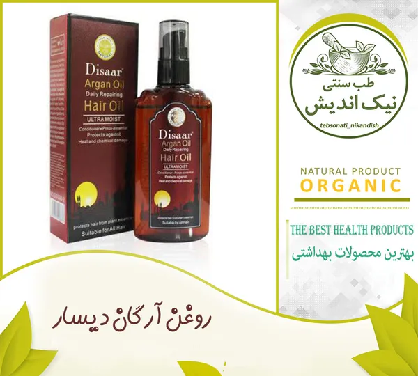روغن آرگان فواید بسیاری از جمله رطوبت رسانی عمیق، رفع خشکی و شکستگی بر روی موها دارد. همچنین به مو بافت نرم و ظاهری براق می بخشد. روغن آرگان دیسار یک روغن موی جدید است که حاوی پروتئین و ویتامین های غنی برای کمک به بهبود موهای خشک و ضعیف است.
